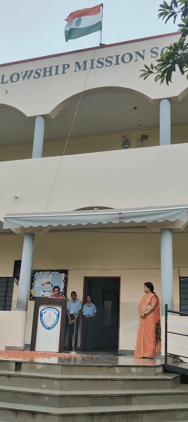 Fellowship Mission School celebrated the 78th Indian Independence Day at the school premises. Our Principal Ma'am Ms Nikita David inaugurated the programme by hoisting the Indian National Flag. Students from senior grades delivered speech , narrated poems relevant to this historic day. Teachers also took part in the programme and made this day a memorable one. Below are a few glimpses from today's event.